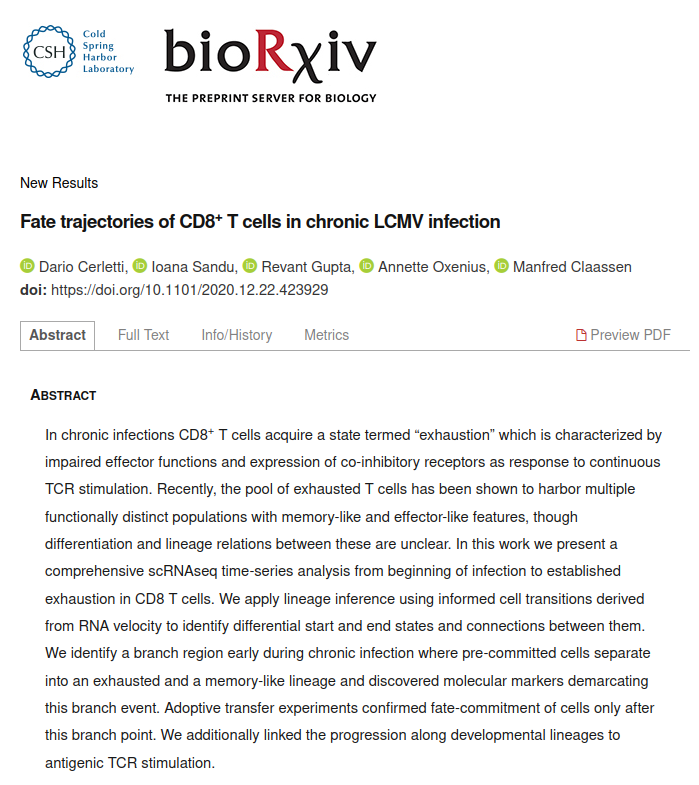 I am currently finishing my PhD at ETH in the lab of Manfred Claassen at IMSB and in the lab of Annette Oxenius at IMB. I study the features and development of CD8+ T cells in chronic viral infections. We make use single-cell sequencing technology combined with multivariate computational analysis to understand phenotypic changes in T cell during the course of an infection. I conduct both experiments and computational anlysis.